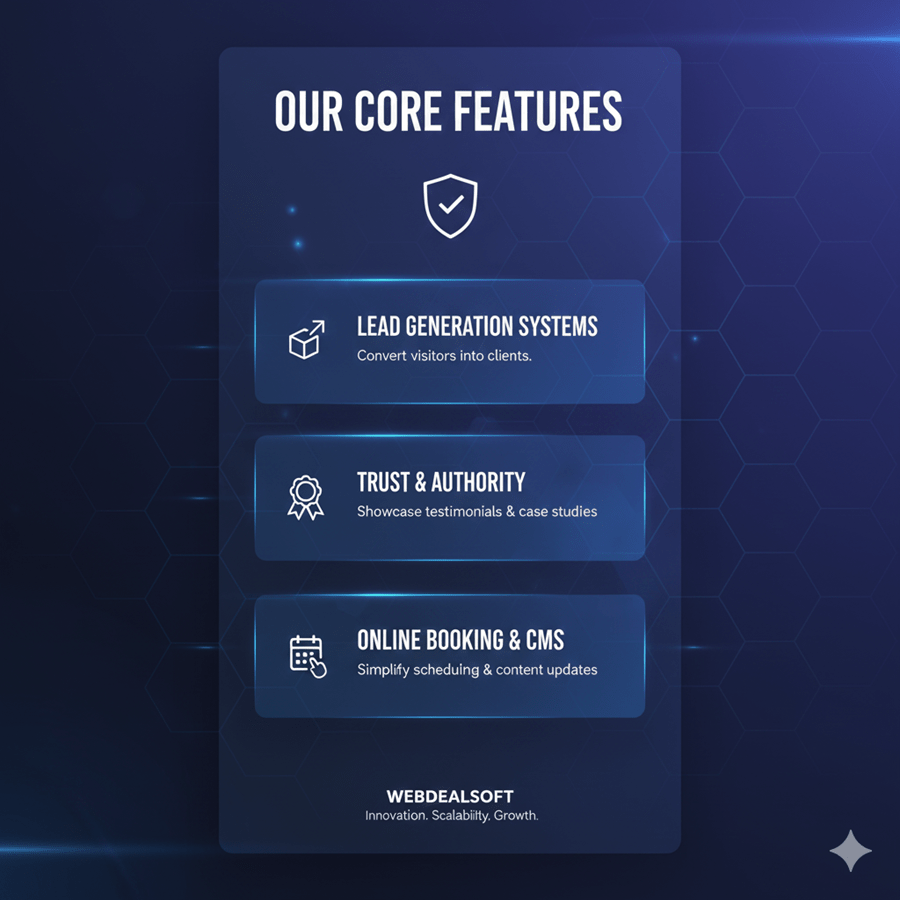 For service-based businesses, your website is your most valuable asset. It's the 24/7 sales representative that builds trust, showcases your expertise, and ultimately drives bookings and inquiries. At Webdealsoft, we specialize in developing service websites that are not just visually appealing, but are strategically engineered to capture leads, validate your authority, and simplify the client acquisition process.